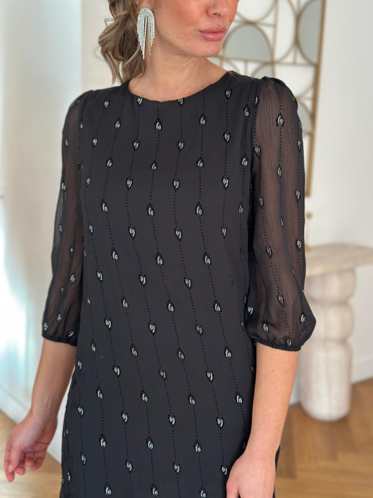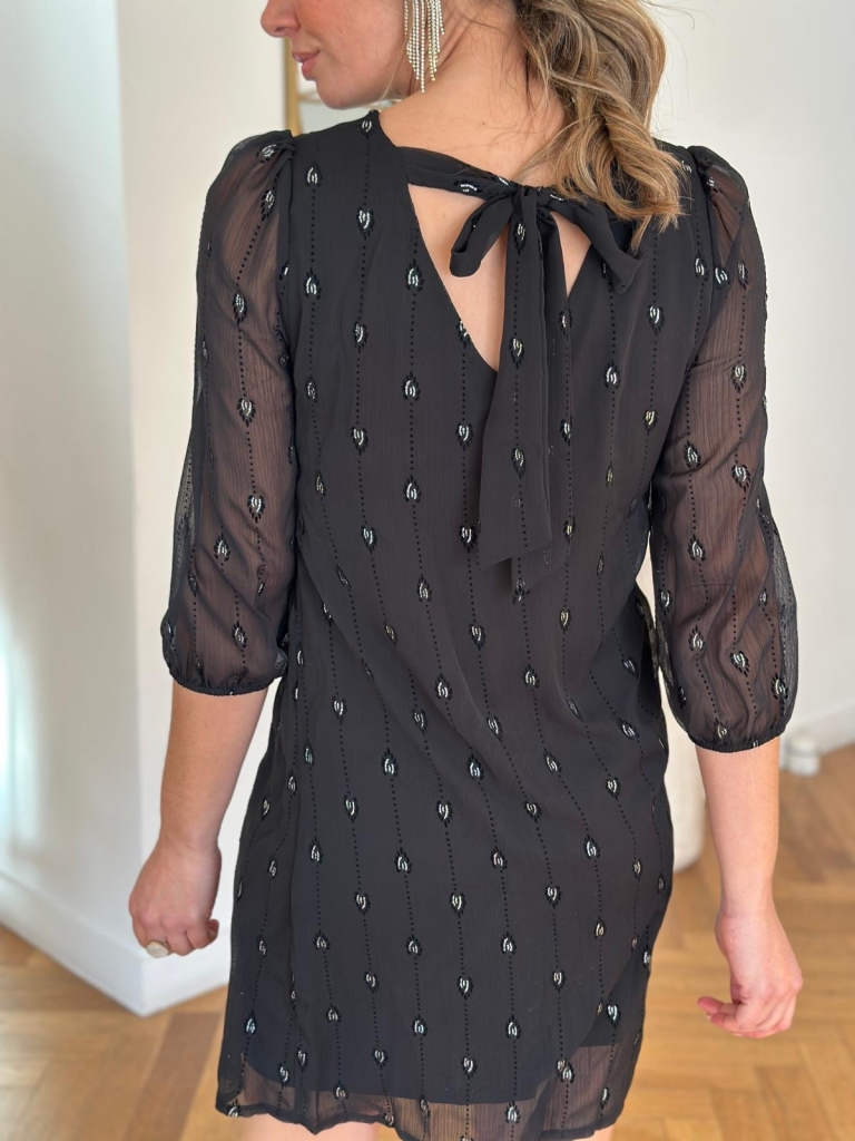 La robe Stacy renvoie une image féminine chic, renforcée par son encolure ronde de type danseuse et ses manches trois quarts. La robe se porte avec des escarpins ou des boots, à moins d'opter pour des ballerines. On craque complètement pour ce modèle.