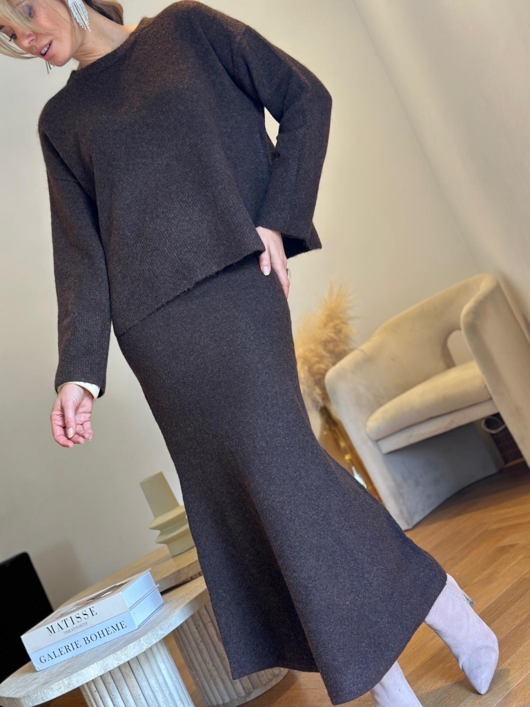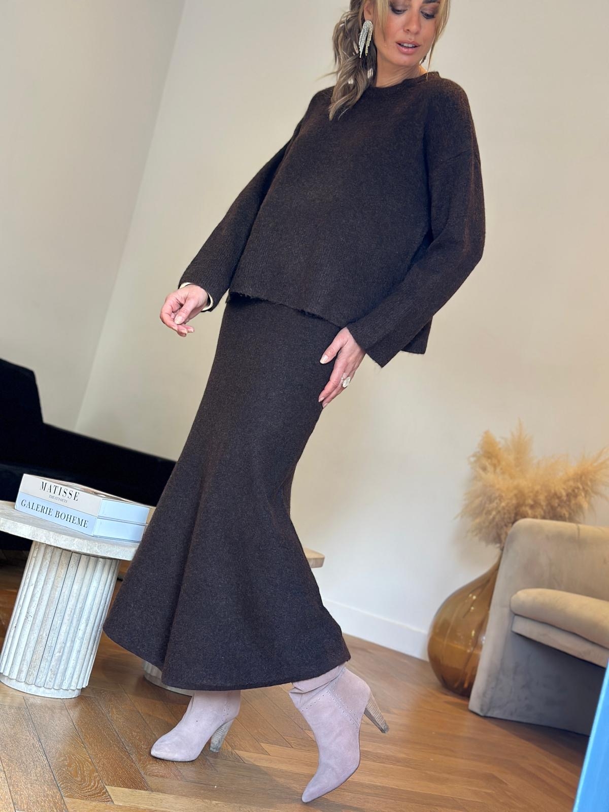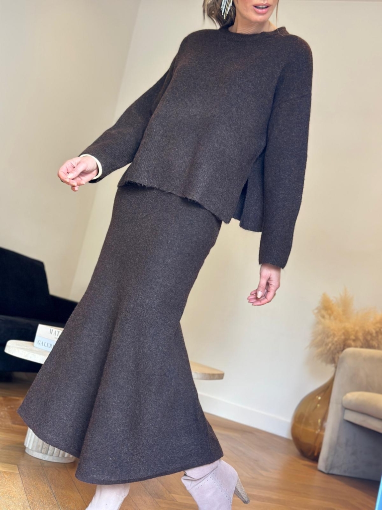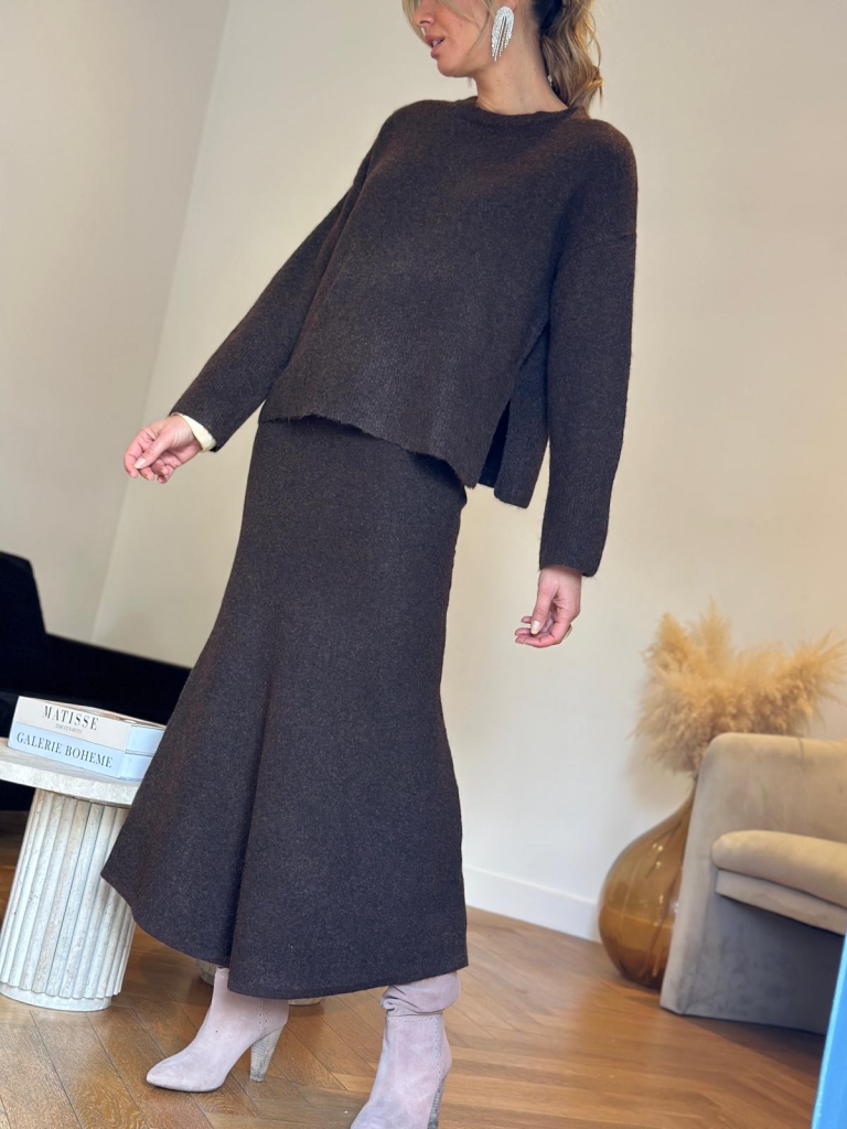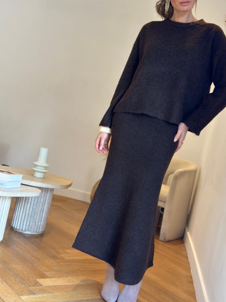 "On fond littéralement pour l'ensemble Sarah Maison144 by Soaddict et son esprit cocooning. Ce modèle adopte une coupe fluide et une taille élastiquée , tout cela dans une matiere ultra douce.Une jupe au tombé parfait à porter tout simplement avec un tee shirt oversize pour un effet sport chic , ou avec le pull de la meme serie pour un total look .