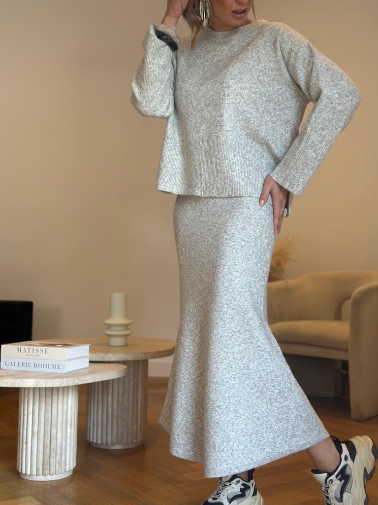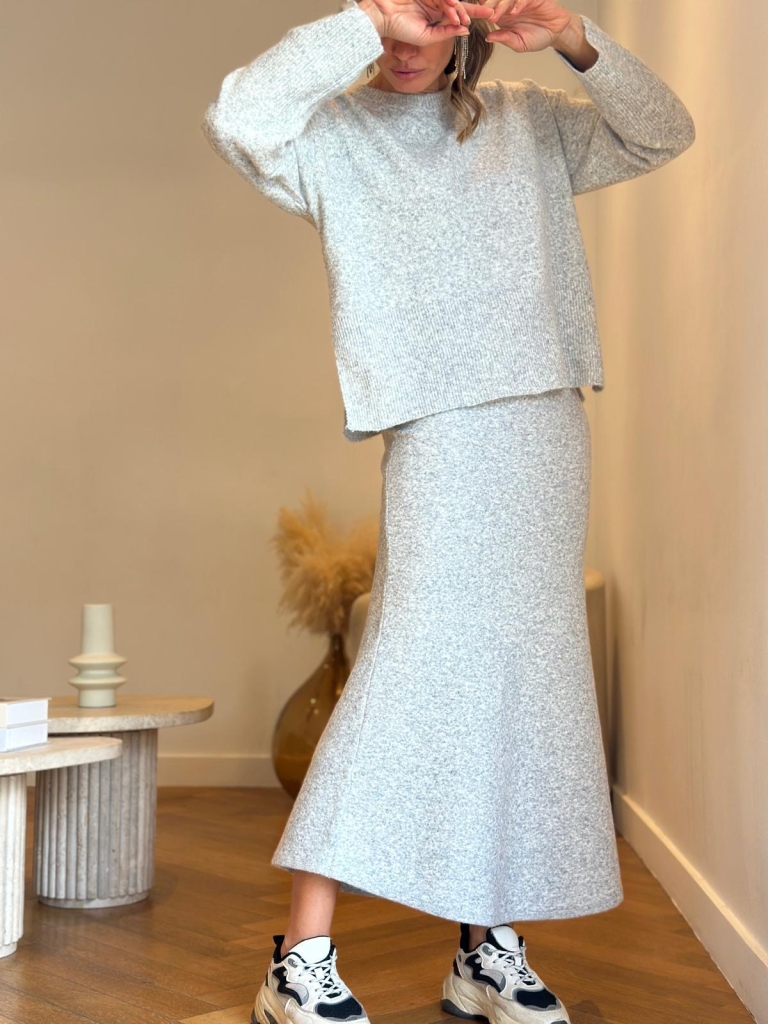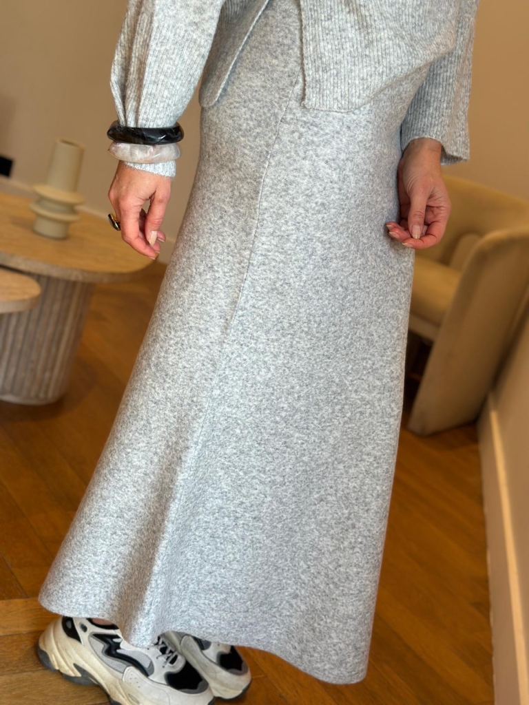 "On fond littéralement pour l'ensemble Sarah Maison144 by Soaddict et son esprit cocooning. Ce modèle adopte une coupe fluide et une taille élastiquée , tout cela dans une matiere ultra douce.Une jupe au tombé parfait à porter tout simplement avec un tee shirt oversize pour un effet sport chic , ou avec le pull de la meme serie pour un total look .