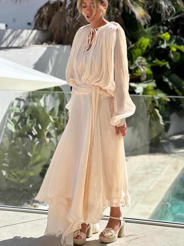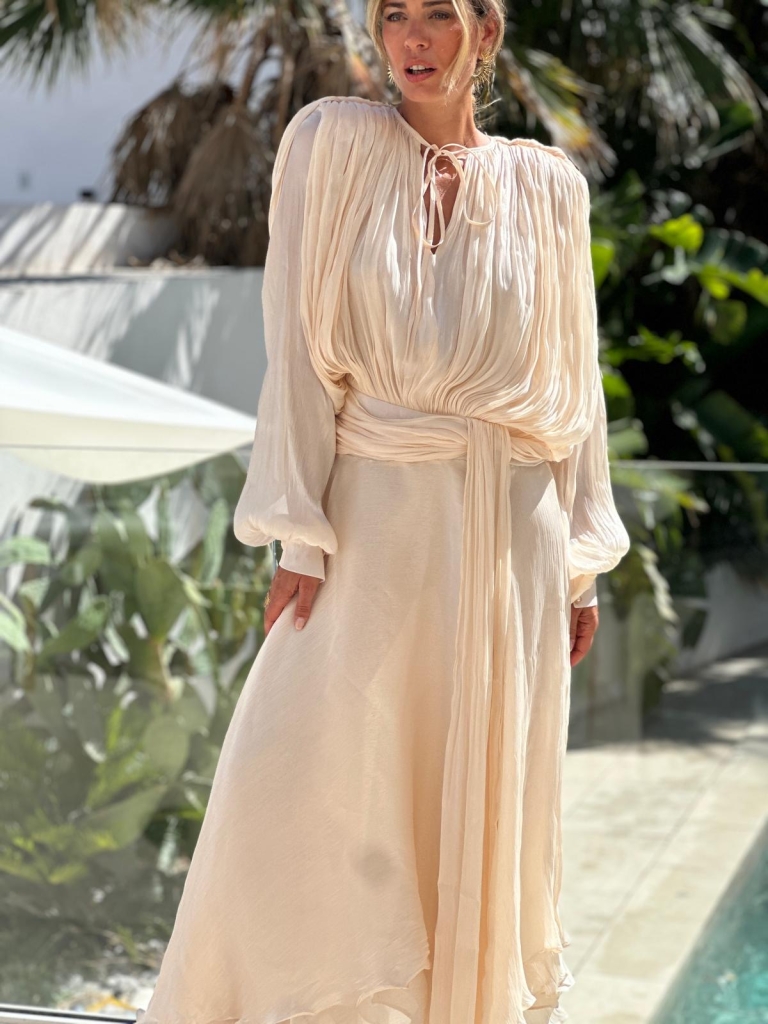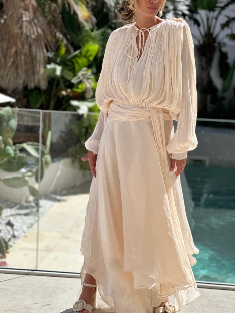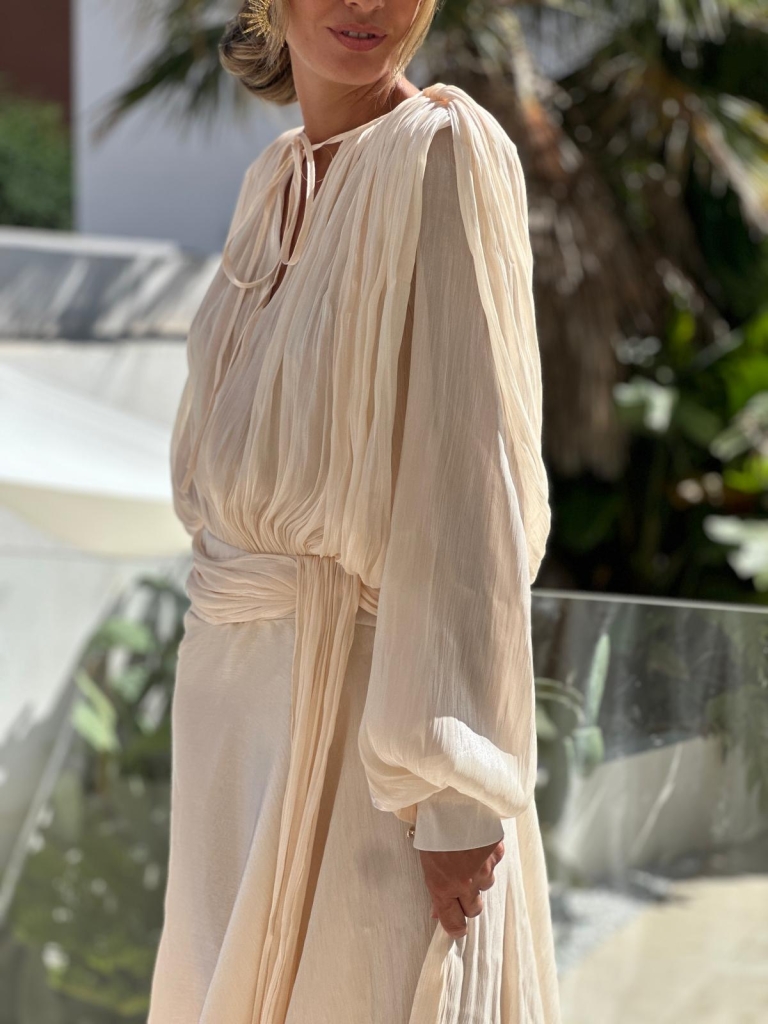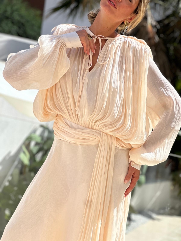 La robe Melania Maison144 by Soaddict se veut élégante et féminine. Ce modèle long offre un sublime col et une belle ampleur. Coup de cœur pour les détails et la matière .
